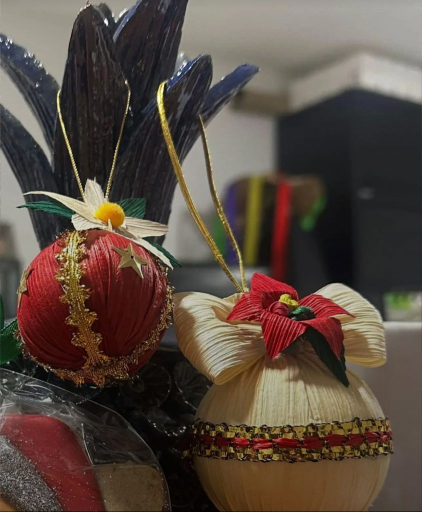 Ya sea en el mercado de artesanías o en las casas abiertas al público, se encuentra una variada oferta de artículos de madera, desde juguetes como trompos y carritos, hasta mobiliario como sillas, salas, comedores y cajas. También destacan piezas decorativas en fibras vegetales como la chuspata, que incluyen abanicos y esferas, ideales para la decoración navideña o para lucir durante todo el año.