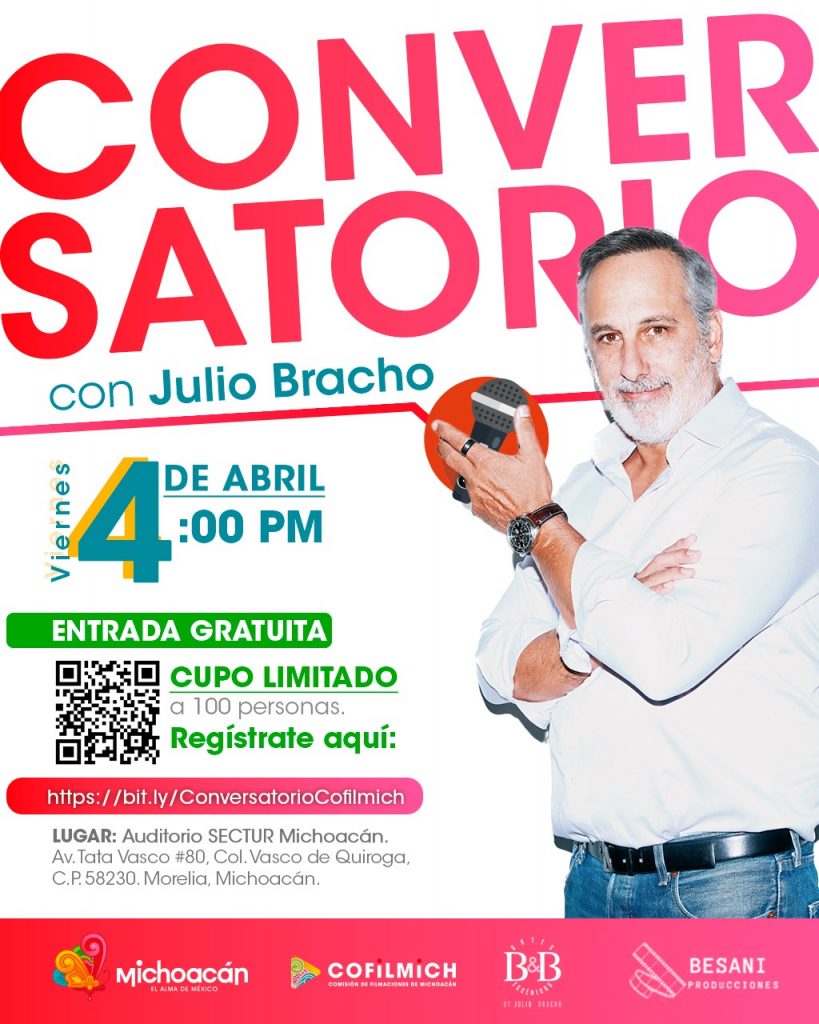 Morelia, Michoacán, 31 de marzo de 2025.- El próximo viernes 4 de abril, Julio Bracho llegará a Michoacán para ofrecer un conversatorio de acceso libre dirigido a actrices, actores, personal del entretenimiento y público en general.