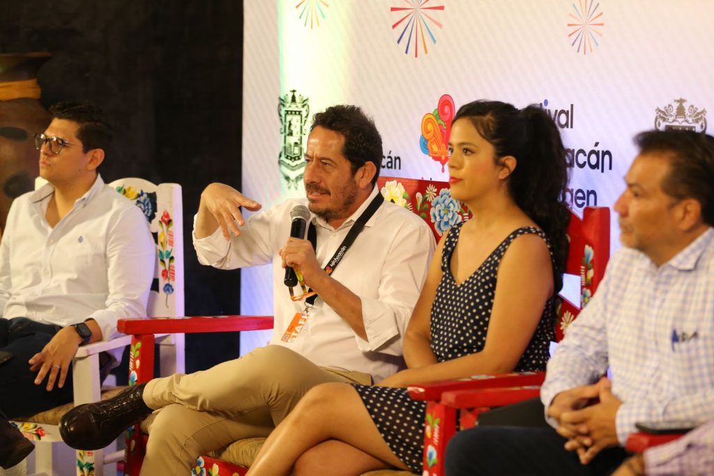 A la rueda de prensa también acudieron la secretaria de Cultura, Tamara Sosa Alanís; y los directores del Centro de Convenciones y Exposiciones de Morelia (Ceconexpo), Gustavo Mendoza García y del Instituto del Artesano Michoacano (IAM), Cástor Estrada Robles.