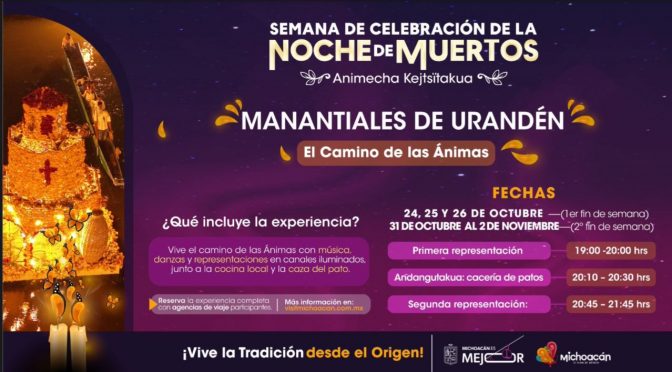 • Esta experiencia incluye música, talleres, danzas y disfrutar de los canales iluminados Morelia, Michoacán, 19 de octubre de 2025.- Los Manantiales de Urandén serán nuevamente uno de los escenarios en donde se vivirá la Semana de Celebración de la Noche de Muertos, una experiencia que no debes perderte, que incluye representaciones y talleres que […]