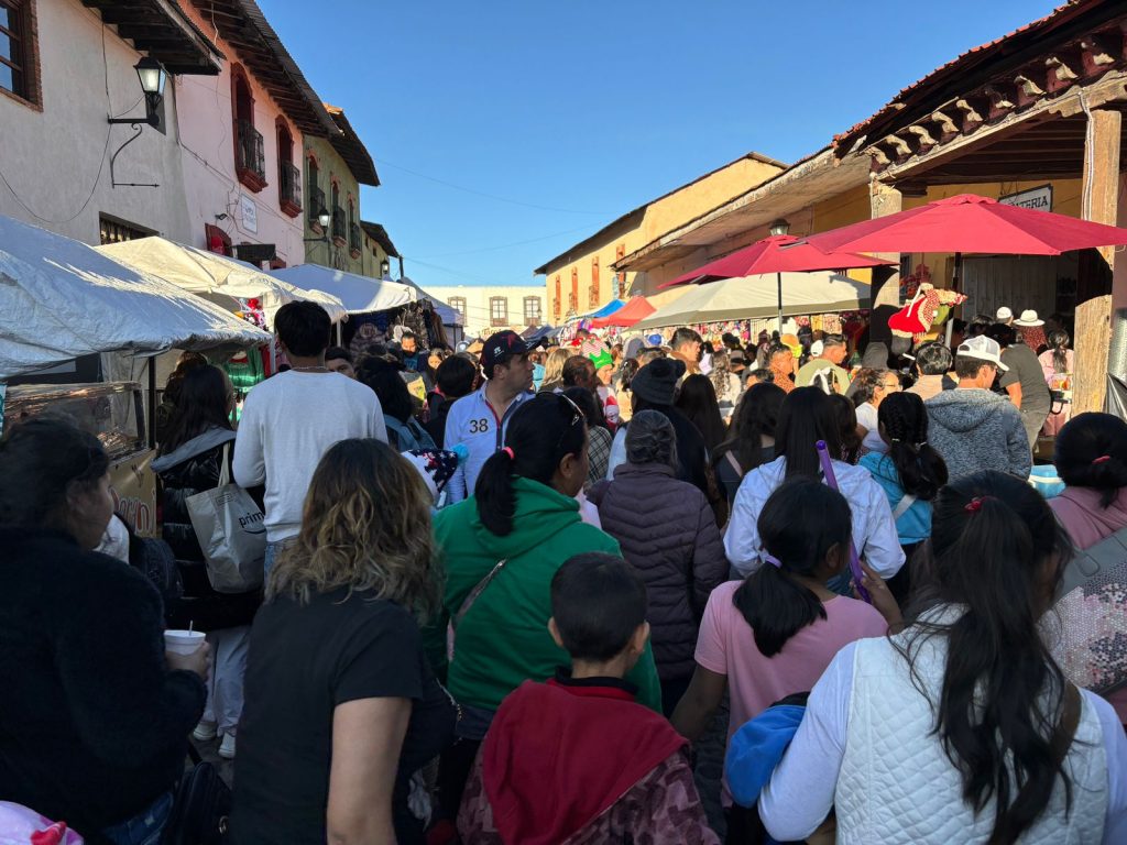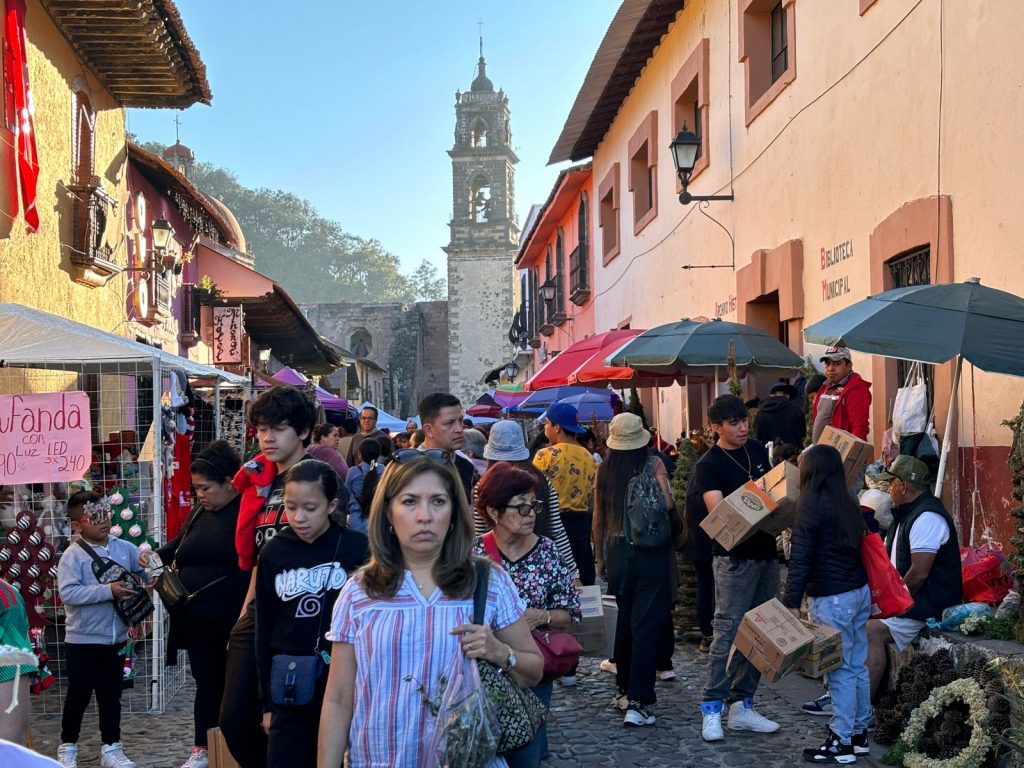 Tlalpujahua, Michoacán, 24 de noviembre de 2024.- El Pueblo Mágico de Tlalpujahua sigue recibiendo a turistas y visitantes de distintas partes del país, como Ciudad de México, Querétaro, Jalisco, Monterrey y Estado de México, entre otros, quienes arriban para adquirir las tradicionales piezas de vidrio soplado que ofertan las y los artesanos, en el marco de la Feria de la Esfera 2024.