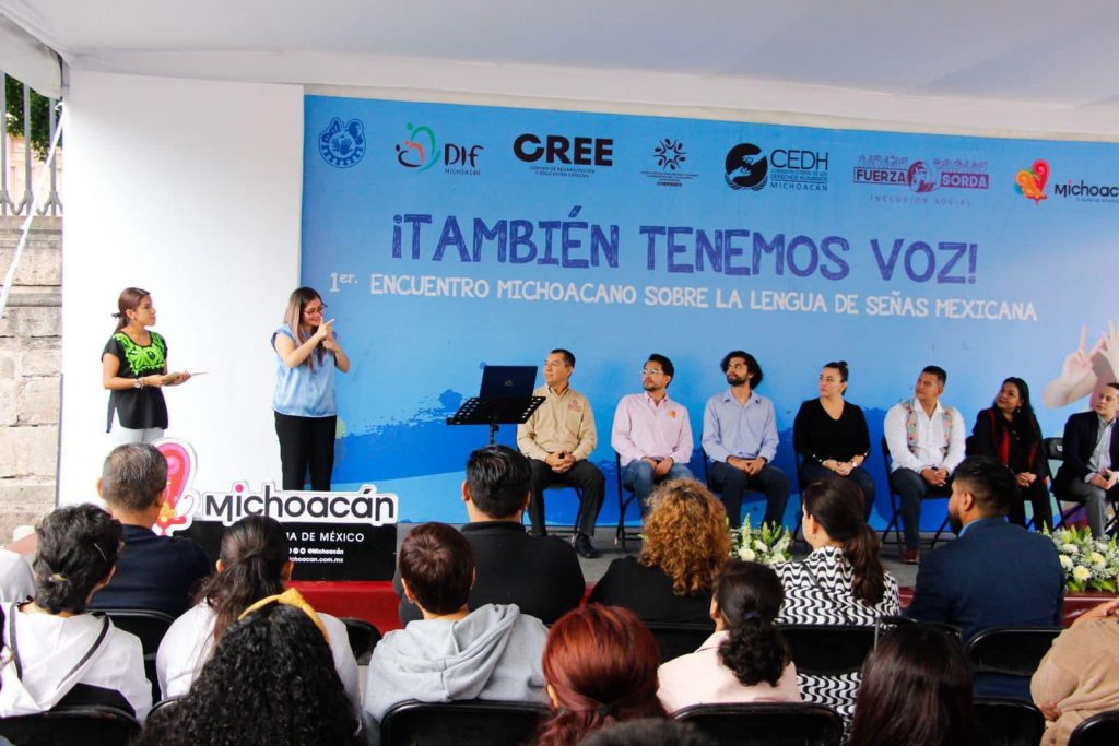 Mónica Zúñiga, organizadora e integrante de la Asociación Cultura de Sordos del Estado de Michoacán A.C., recordó durante su participación, que el 10 de junio de 2005 fue la fecha en la que se aprobó el reconocimiento de la Lengua de Señas Mexicana. “Y en este encuentro informaremos los usos correctos de los términos, más las capacidades de las personas sordas, como los productos que efectuamos”.