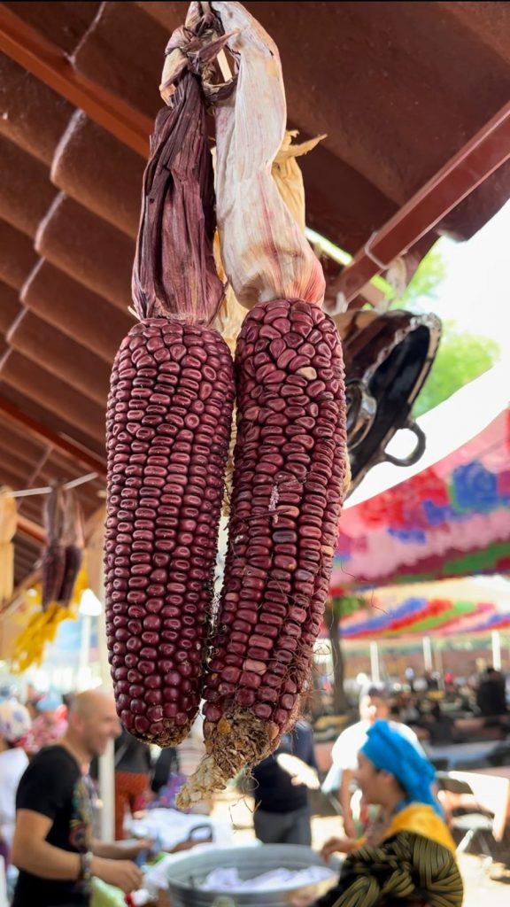 Entre lo que cocina doña María está el pozole, churipo, corundas, mole de guajolote, atoles, chiles rellenos, arroz, tortillas de maíz azul entre otras delicias.