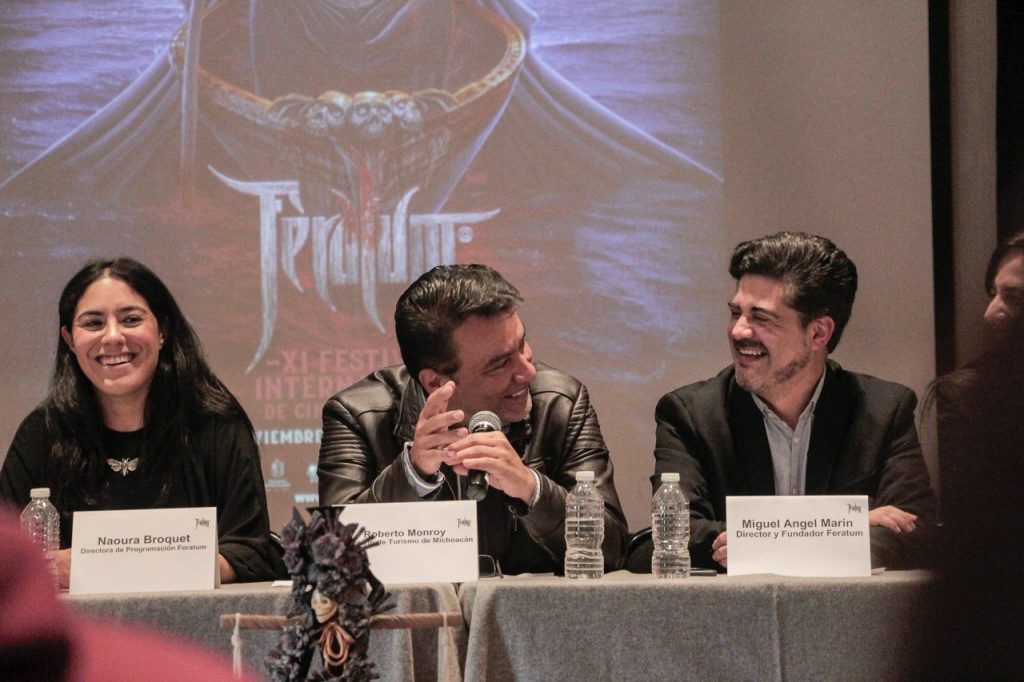 En la conferencia de prensa, también participó la secretaria de Cultura, Gabriela Molina Aguilar; Ramón Medina, actor de “Emboscada”; Naoura Broquet, directora de programación Feratum y Marina Aguilera, secretaria de Turismo de Pátzcuaro.
