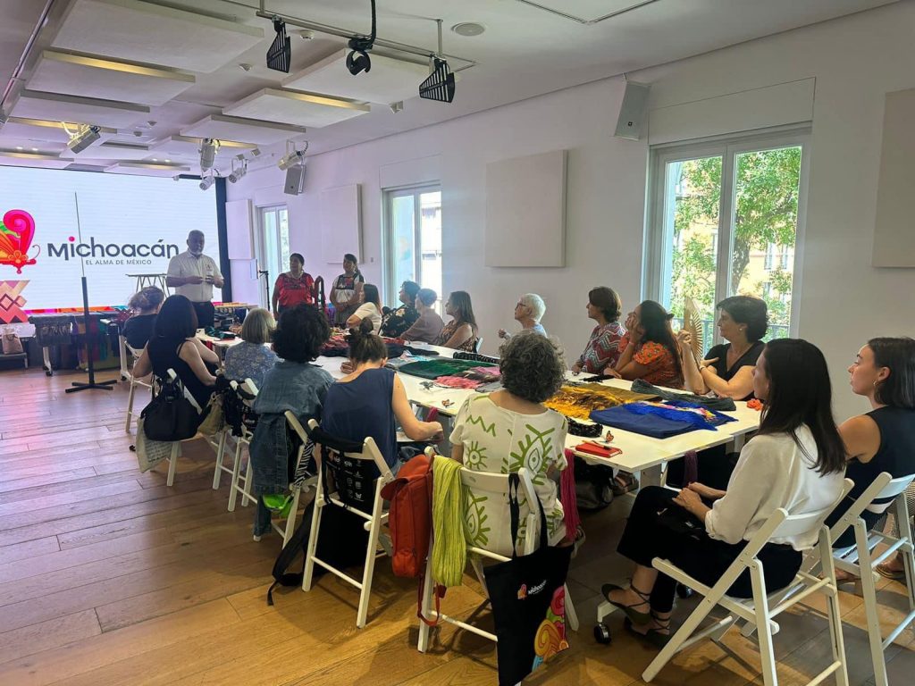 Morelia, Michoacán, 20 de junio de 2024.- El talento, la herencia y la creatividad michoacana llenan de colores, formas y excepcionales diseños la Casa de México en España, con la presencia de las y los artesanos que plasman porqué el estado es “el alma de México”.