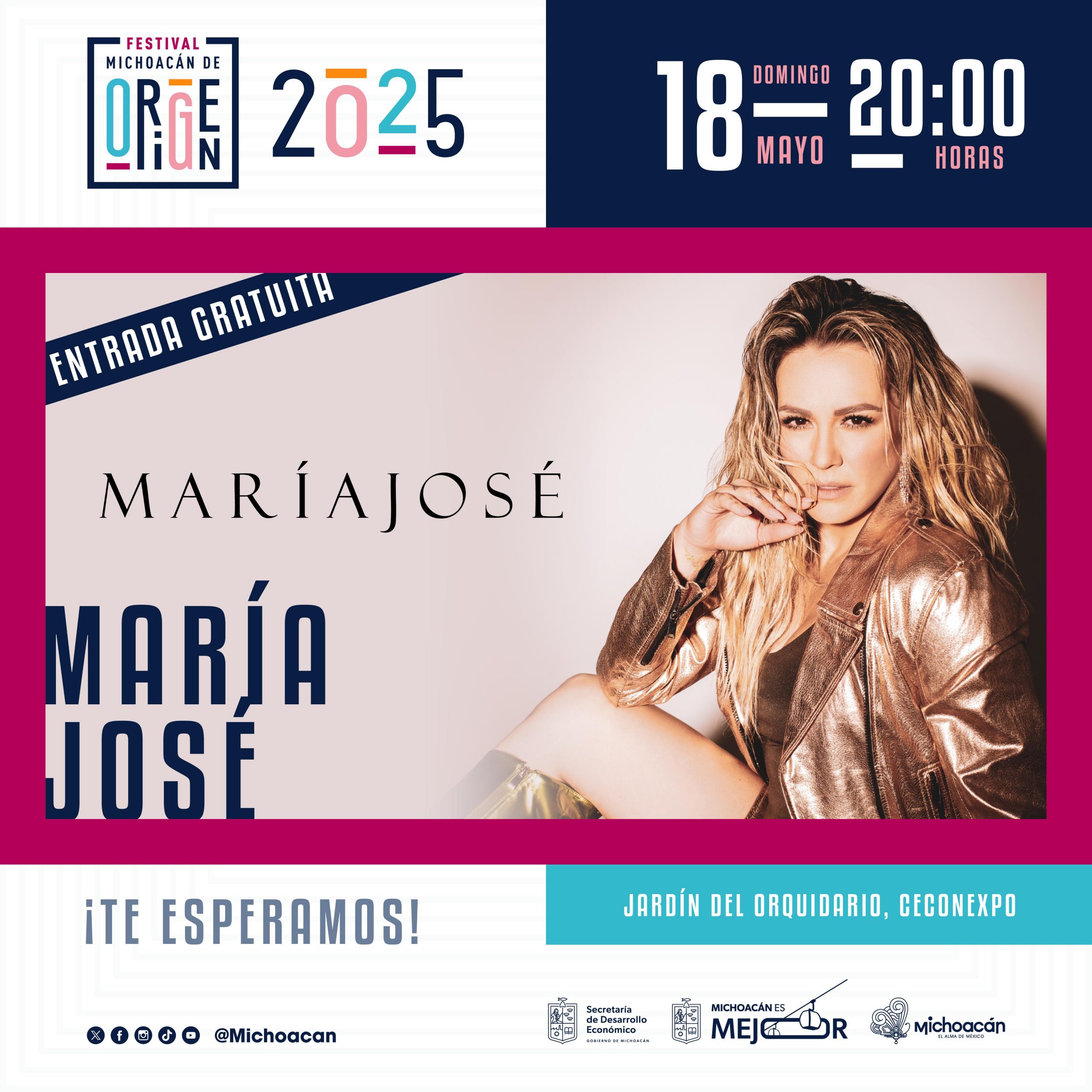 Morelia, Michoacán, 17 de mayo de 2025.- El Festival Michoacán de Origen (FMO) cierra su edición 2025 mañana domingo 18 de mayo con la gran presentación de María José.