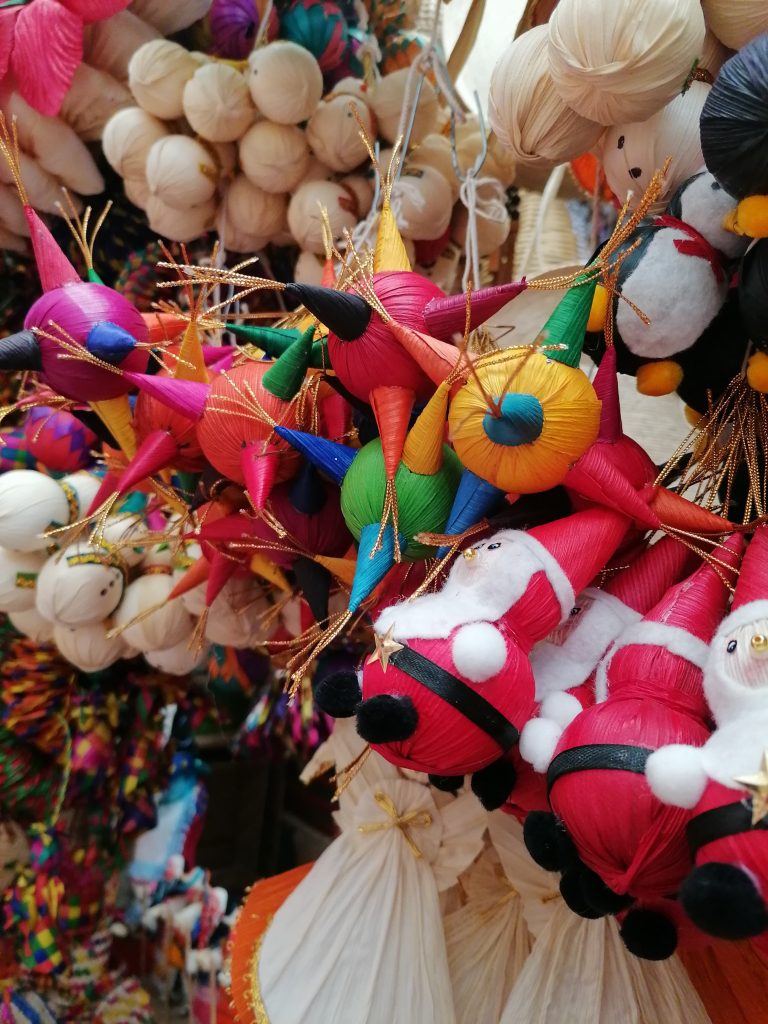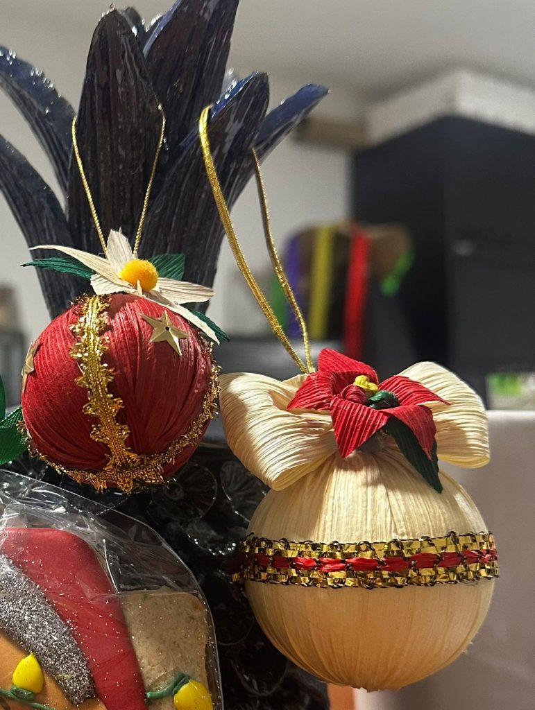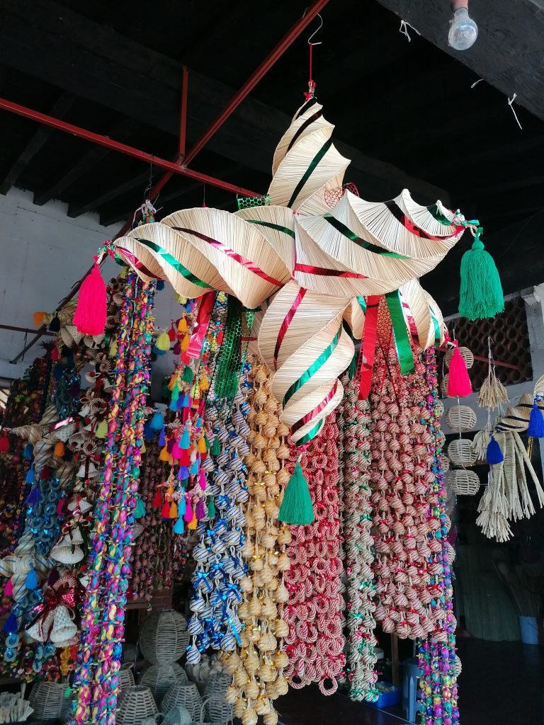 A las afueras de Los Olivos, espacio conformado por 54 monumentos vivientes con estos árboles los más antiguos plantados en América, se encuentran diversos comerciantes y artesanos que ofrecen una amplia variedad de hermosas creaciones hechas de fibras vegetales, como esferas, campanas, piñatas, Santa Claus, estrellas, cajas de regalo, entre otros diseños.