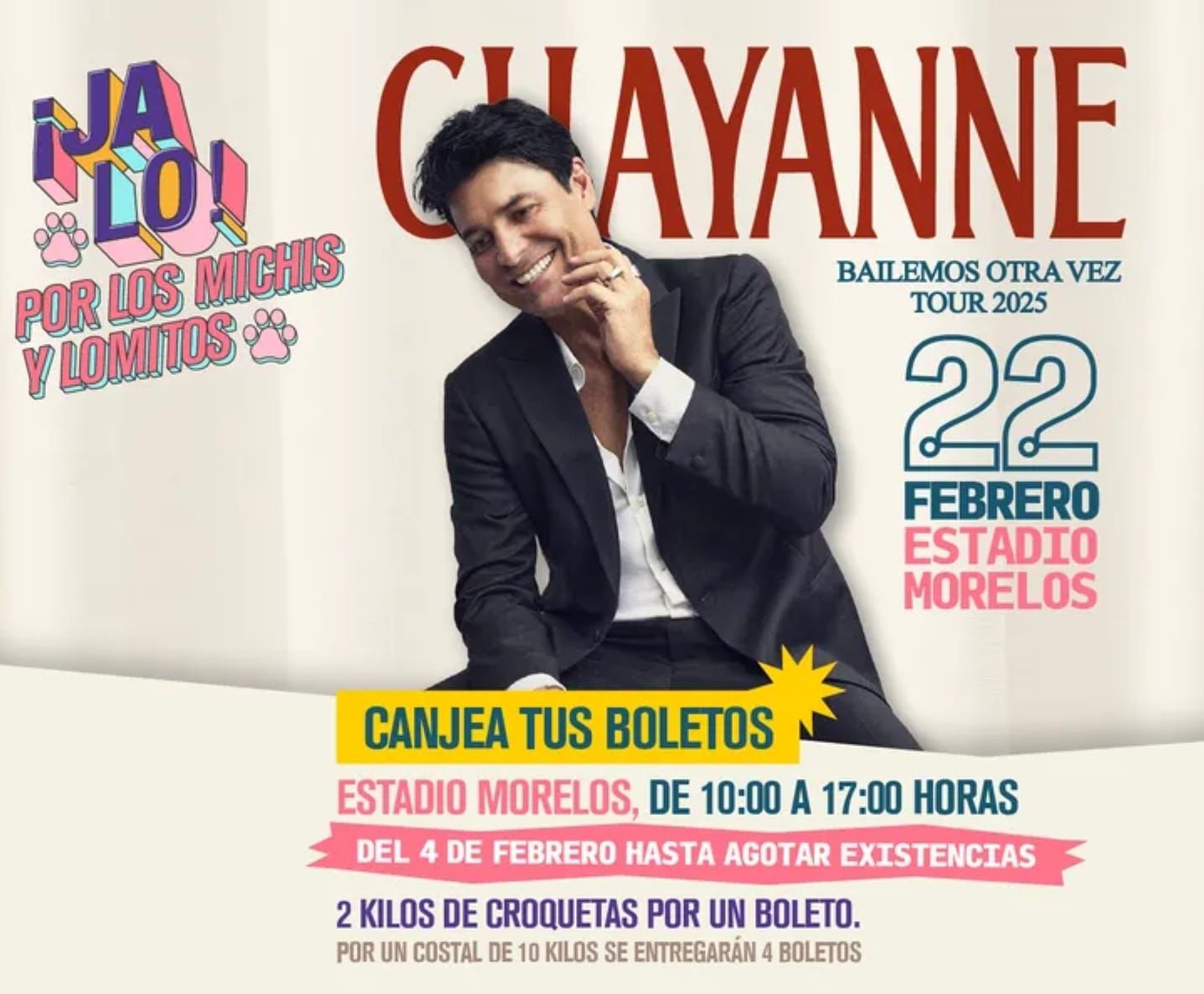 Morelia, Michoacán, 3 de febrero de 2025.- El día llegó. Mañana martes 4 de febrero inicia el canje de boletos para el concierto gratuito que ofrecerá Chayanne el 22 de febrero en el Estadio Morelos, organizado por el Gobierno de Michoacán.