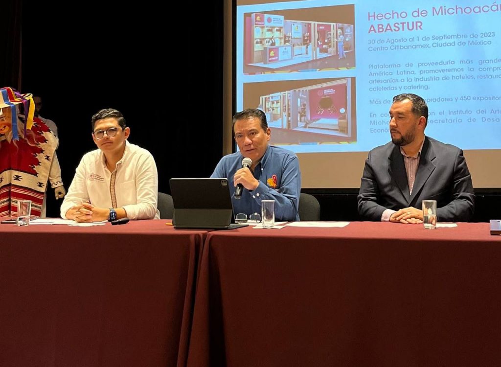 Morelia, Michoacán, 23 de agosto de 2023.- Con la finalidad de promocionar los productos turísticos de Michoacán en Ciudad de México, la entidad participará durante el mes de septiembre en Punto México, la muestra artesanal, gastronómica, artística y cultural para difundir sus 10 Pueblos Mágicos, los patrimonios de la humanidad, y las migraciones.