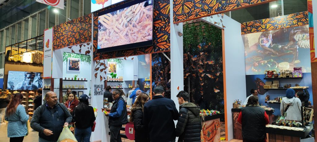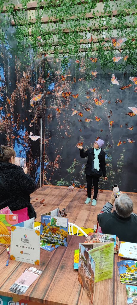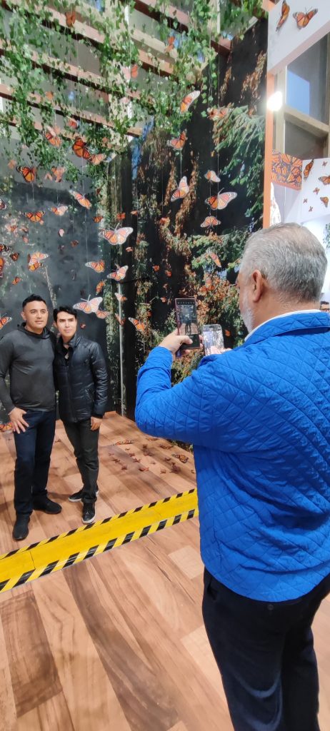 En el estand de Michoacán, los asistentes también pueden adentrarse a la experiencia de la Mariposa Monarca con una experiencia inmersiva y sentirse en alguno de los tres santuarios que existen en la entidad: El Rosario, Sierra Chincua y Angangueo.