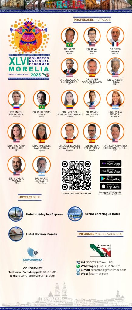 Morelia, Michoacán, 13 de octubre de 2025.- Del 15 al 19 de octubre, Michoacán recibirá a más de 800 especialistas en otorrinolaringología y sub especialidades relacionadas en la XLVI edición del Congreso Internacional de la Federación Mexicana de Otorrinolaringología y Cirugía de Cuello (Fesormex), considerado como el evento más importante del campo en el país, informó la Secretaría de Turismo del estado (Sectur), que encabeza Roberto Monroy García.