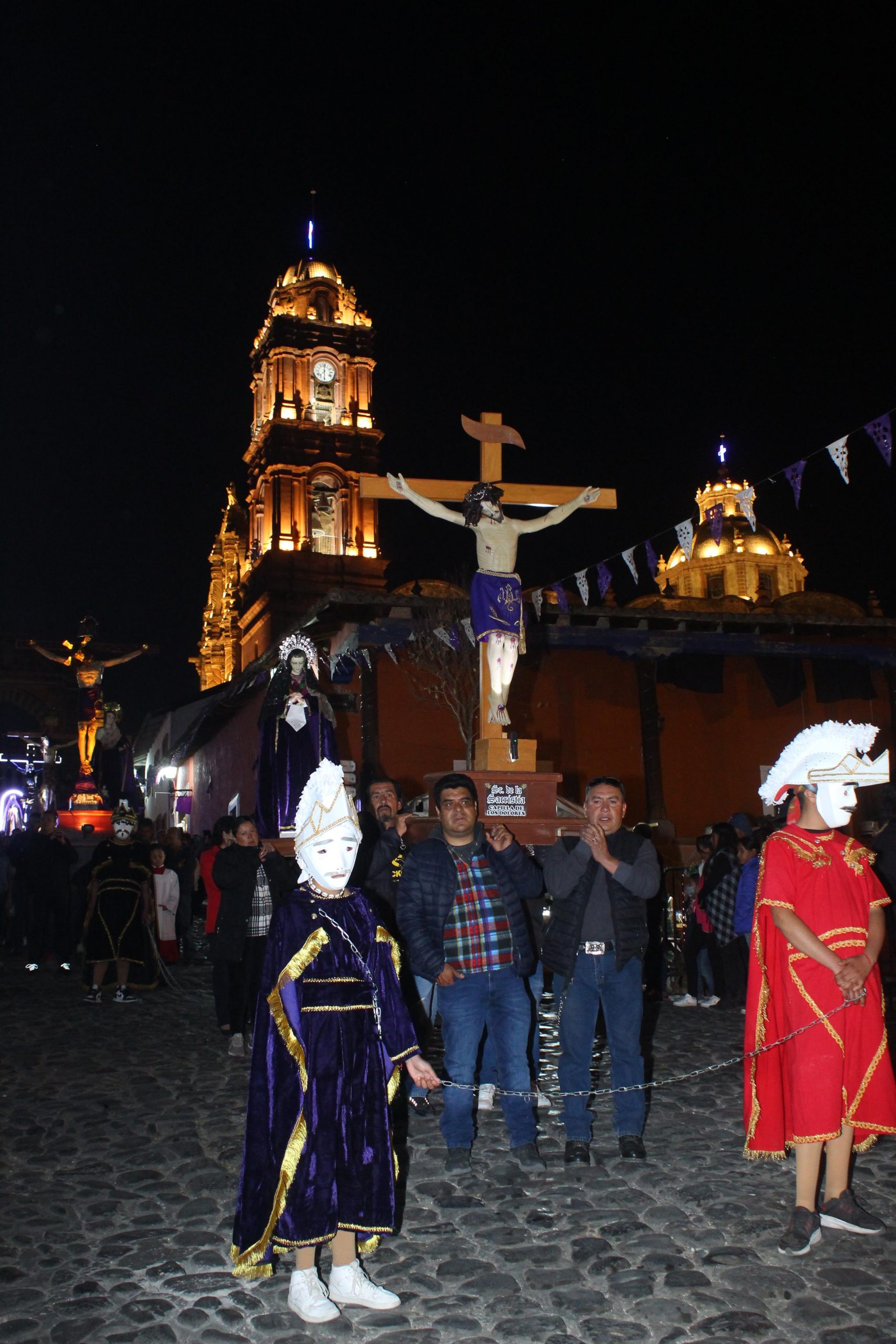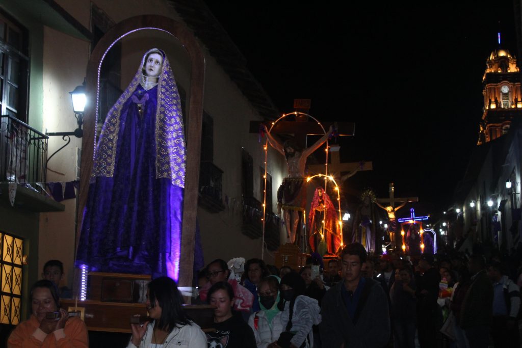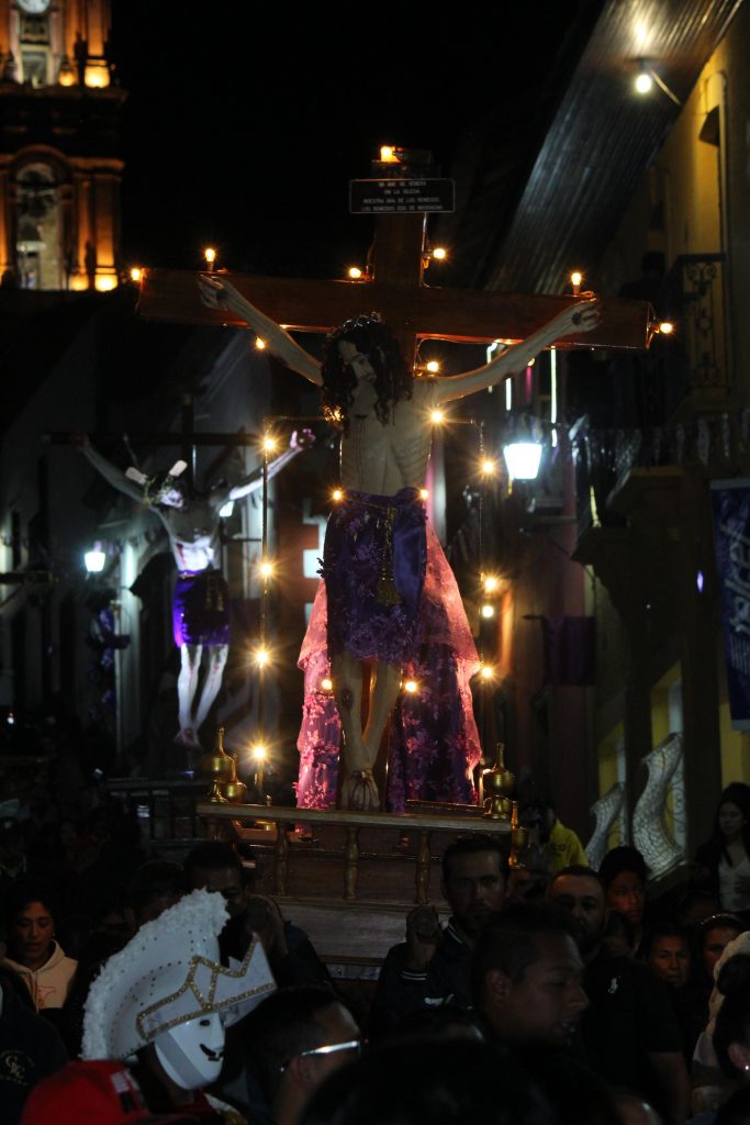 Tlalpujahua, Michoacán, 28 de marzo de 2024.- La Procesión de los Cristos de Tlalpujahua salió nuevamente a las calles principales del Pueblo Mágico para atraer la atención de turistas y visitantes que en esta Semana Santa se encuentran recorriendo Michoacán.