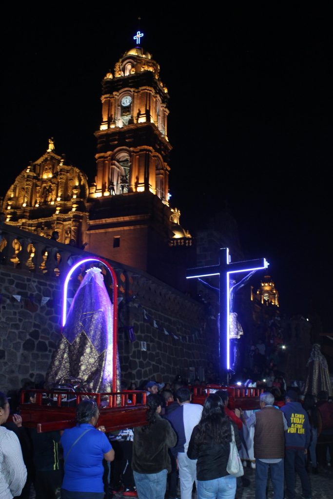 Tanto los habitantes como los creyentes de comunidades cercanas, turistas y visitantes, observaron el recorrido que se prolongó por más de dos horas por las calles principales y de esta manera apreciar y acompañar a los 35 Cristos y Dolorosas, destacándose los cinco más antiguos, es decir, el Cristo de los Carrillos, el Cristo de Zapateros, el Cristo del Monte, el Cristo de San Pedro Tarímbaro y el Cristo de Puxtla.