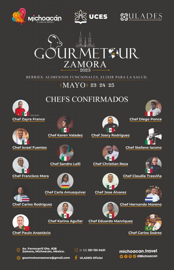 Morelia, Michoacán, 22 de marzo de 2023.– La academia y el turismo se fusionarán del 23 al 25 de mayo en Gourmetour Zamora, que organiza la Universidad Capital de Estudios Superiores Plantel Ciencias de la Salud y Humanidades, con la presencia de 18 chefs de fama internacional.