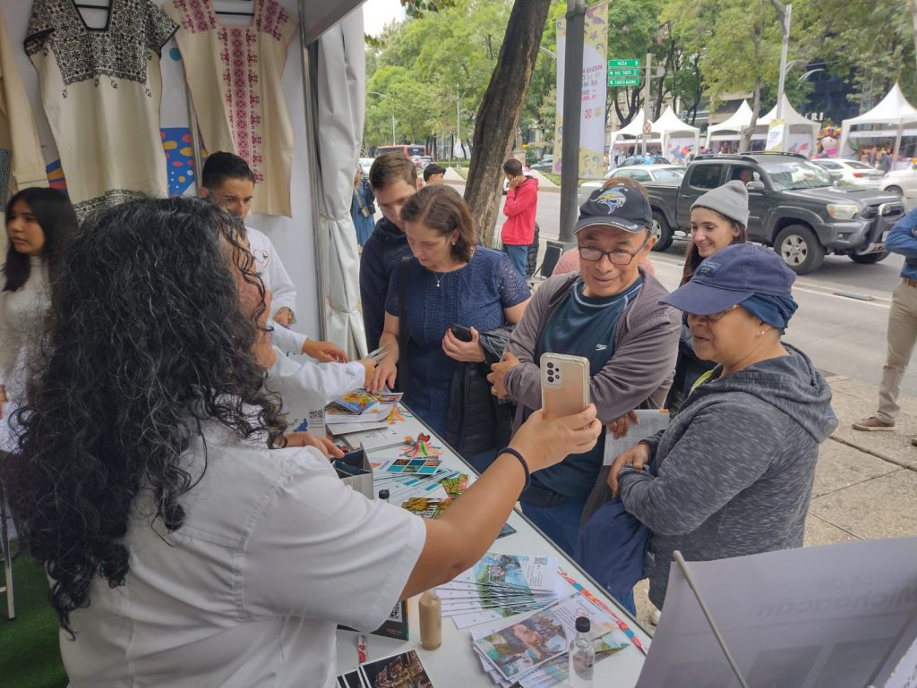 Desde la avenida Paseo de la Reforma de la capital del país, la Secretaría de Turismo de Michoacán (Sectur) ha logrado atraer a los visitantes al estand donde se encuentra personal de la dependencia mostrando cada uno de los destinos que se pueden disfrutar en estas vacaciones de verano y durante todo el año, con la intención de que los asistentes planifiquen su visita a la entidad.