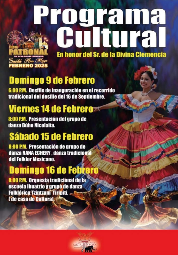 La programación completa puede ser consultada en las cuentas de Facebook: H. Ayuntamiento de Santa Ana Maya Michoacán 2025-2027 y Secretaría de Turismo del Estado de Michoacán.