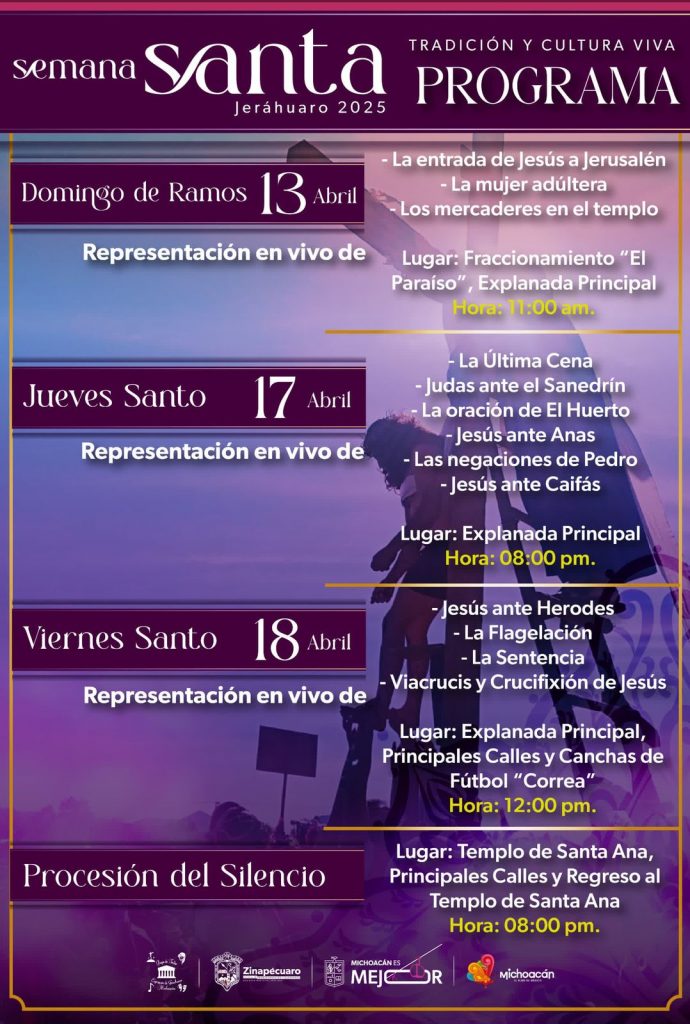 A través de sus redes sociales, el municipio de Sahuayo detalló que sus eventos serán organizados en los diversos templos donde se vivirá la pasión y resurrección de Jesús, al tiempo de experimentar la identidad cultural de la región.