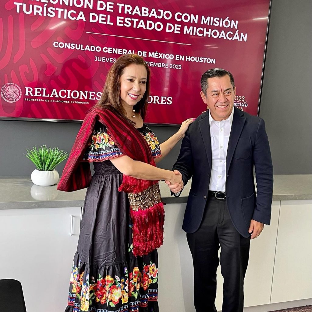 Houston, Texas, 29 de septiembre de 2023.- Como antesala a la presentación de Michoacán en el Houston Fest, el subsecretario de Promoción Turística de la Secretaría de Turismo en el Estado, Carlos Ávila Pedraza, se reunió con la cónsul general de México, María Elena Orantes y con el cónsul adjunto Sergio Rivadeneyra Martell.