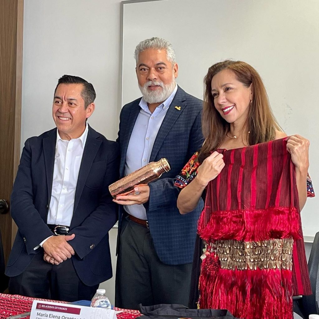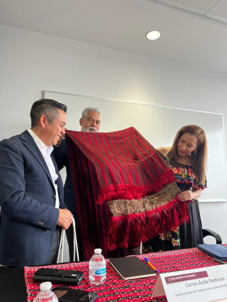 La cónsul recibió por parte del Gobierno de Michoacán un rebozo y una artesanía de cobre, y aprovechó para reconocer el impulso que la administración estatal brinda a las riquezas turísticas y artesanales.