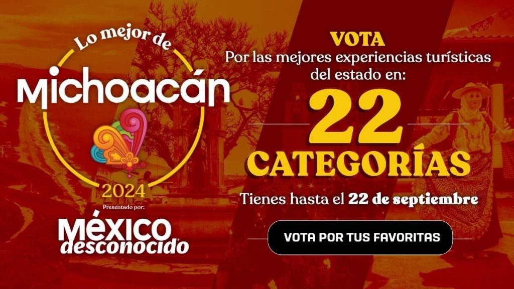 Morelia, Michoacán, 17 de septiembre de 2024.- Es momento de votar por esa experiencia, recuerdo, sensación y momento agradable que has vivido en Michoacán y demostrar porqué el estado es “El Alma de México”.