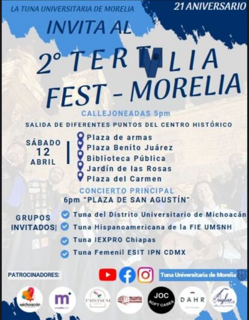 Para mayores detalles se pueden consultar las redes sociales de la agrupación: Tuna Universitaria de Morelia, o bien, en las de la Sectur Michoacán.